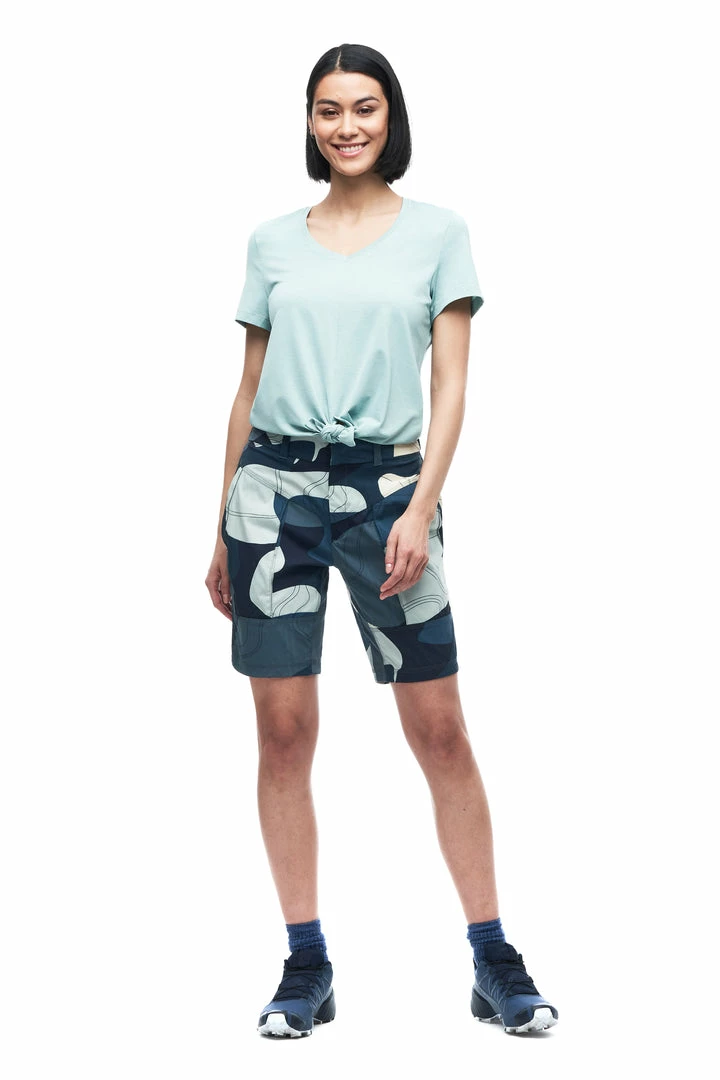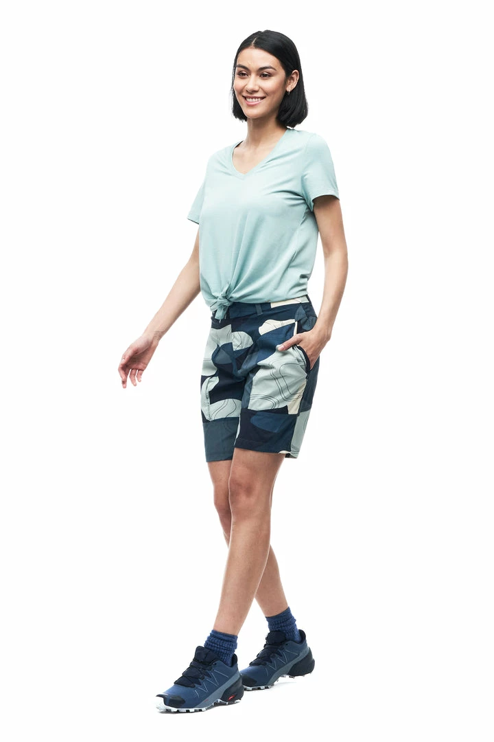 The DIPORTO t-shirt is made of Quick Dry Knit, a light mesh fabric with a Polygiene® finish. Polygiene permanent odor control stops growth of odor-causing bacteria on fabrics, so you can wear more and wash less. You can also have the possibiliy to tie a knot at front of the top which can give you a more fashionable look while remaining useful for your outdoor activities. These features make this top versatile, great for travel and various outdoor activities.