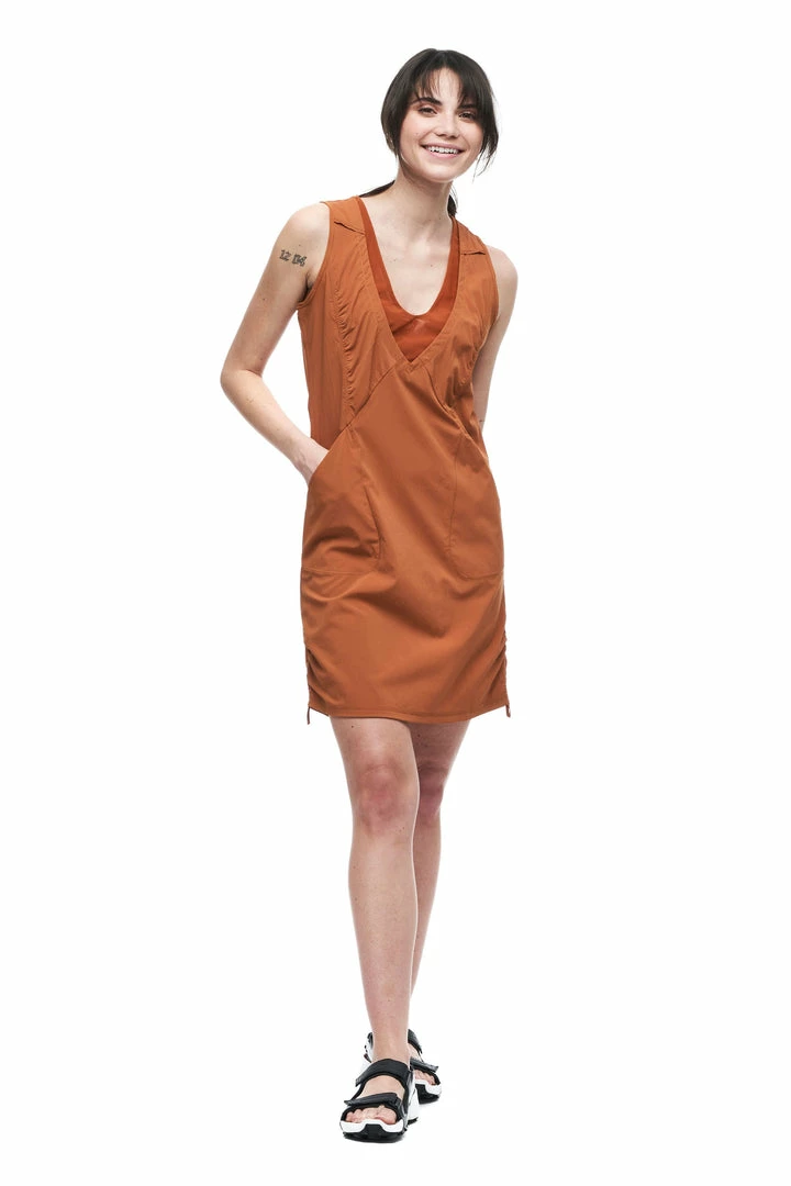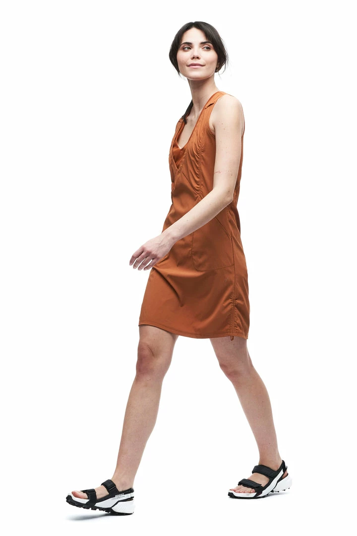 The LIIKE III dress is made of woven stretch fabric that is light and strong. The weave is a 2-way stretch fabric that gives ease of movement, dries quickly, wicks moisture and has a UPF rating 50+. These features make this dress versatile, great for travel and various outdoor activities.