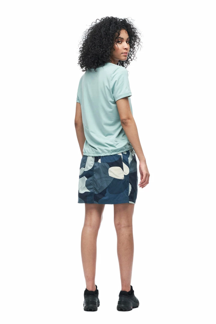 The ULENDO III skot is made of woven stretch fabric that is light and strong. The weave is a 2-way stretch fabric that gives ease of movement, dries quickly, wicks moisture and has a UPF rating 50+. These features make this skort versatile, great for travel and various outdoor activities.