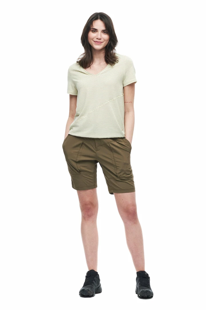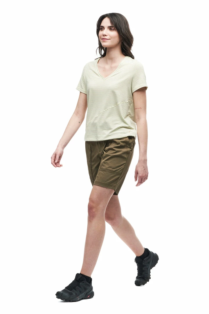 The KURAK short sleeve v-neck is made from fabric containing Lyocell, a cellulosic fiber made of wood pulp obtained from sustainable forests. Partially eco-friendly, drirelease® Lyocell ensures long-term fabric performance and maintains its softness after wash. It has moisture-wicking and fast drying properties, which minimizes odours and maximizes comfort and has a UPF rating 30+. These features make this top versatile, great for travel and various outdoor activities.