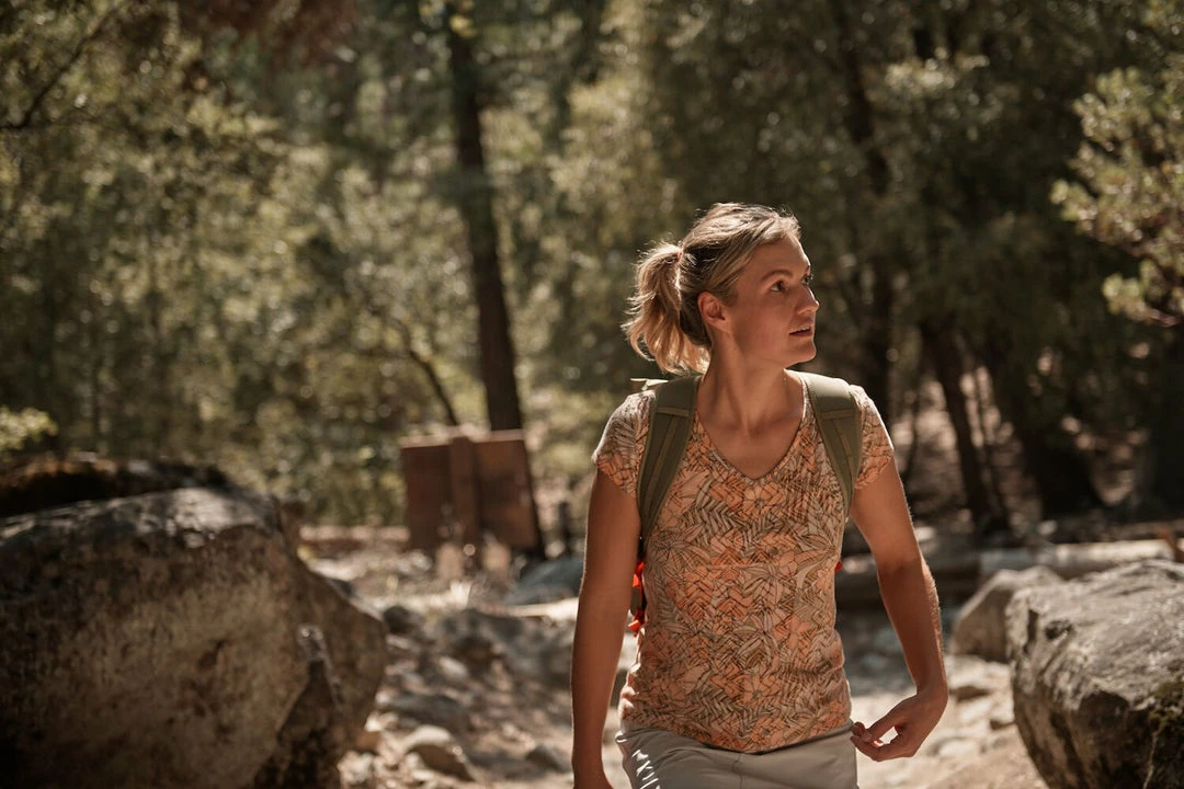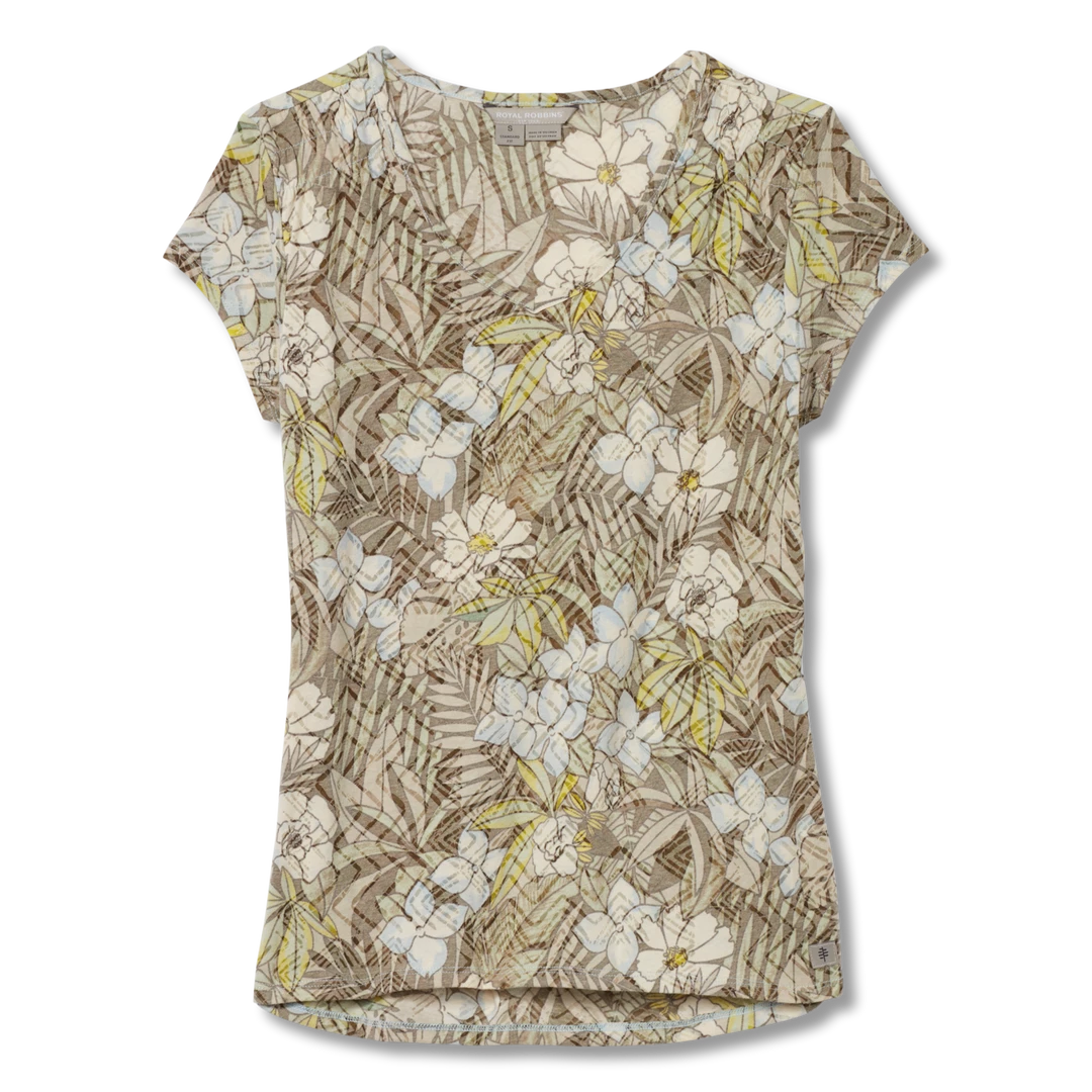 Ultralight, breathable, and incredibly soft, this airy V-neck tee is an easy choice for warm days. Refined lines and the burnout print elevate the look, and the cotton blend material combines natural comfort with quick-dry performance.