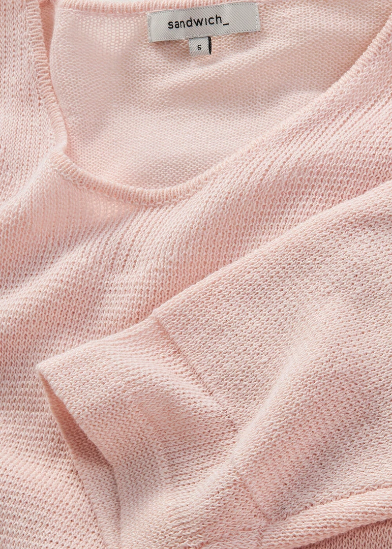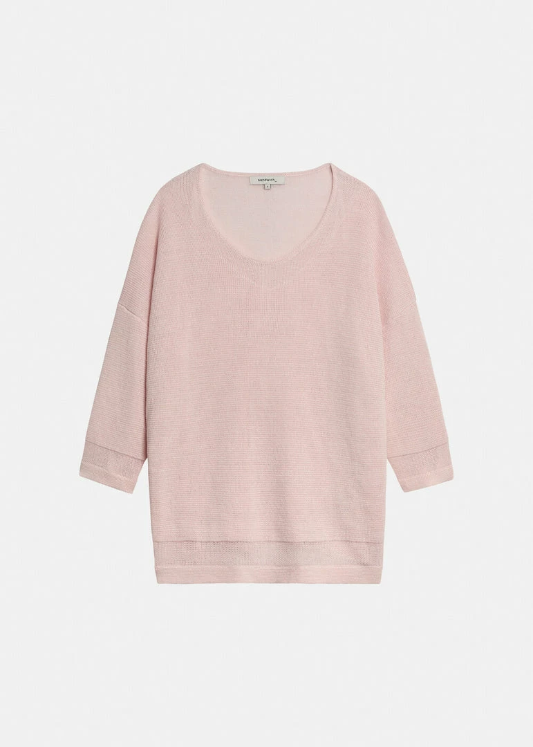 Fine-knit sweater with round neck and dropped shoulder. The small slits in the sides give it a playful touch.