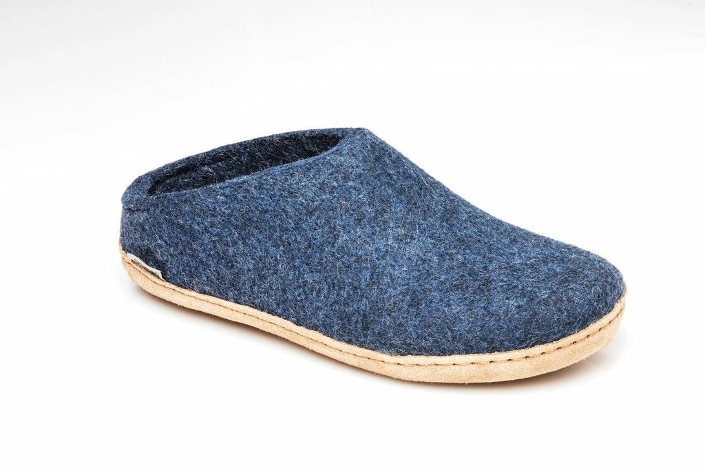 Felt slipper of 100% pure natural wool with a sole of soft calfskin.