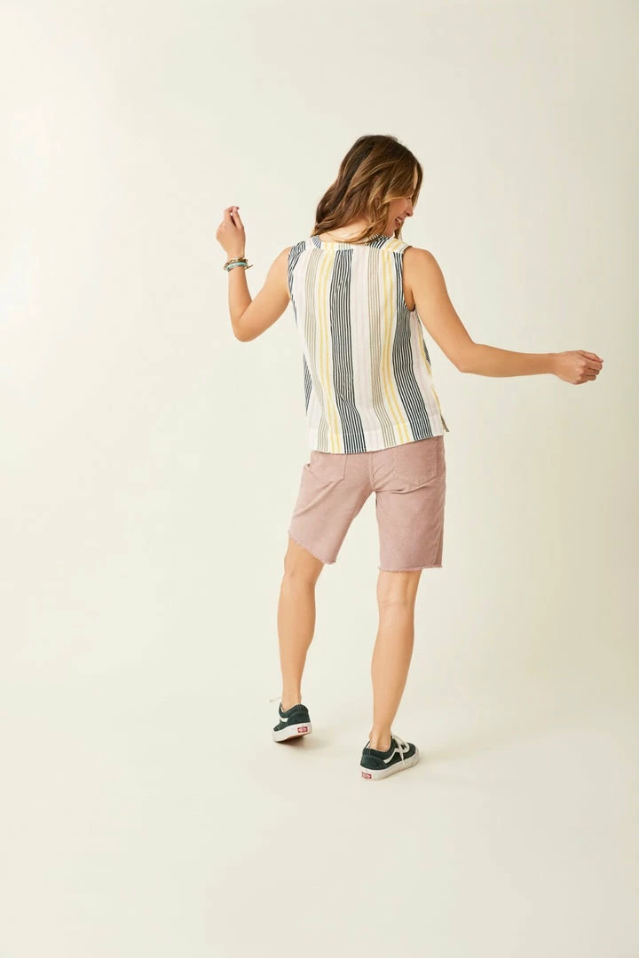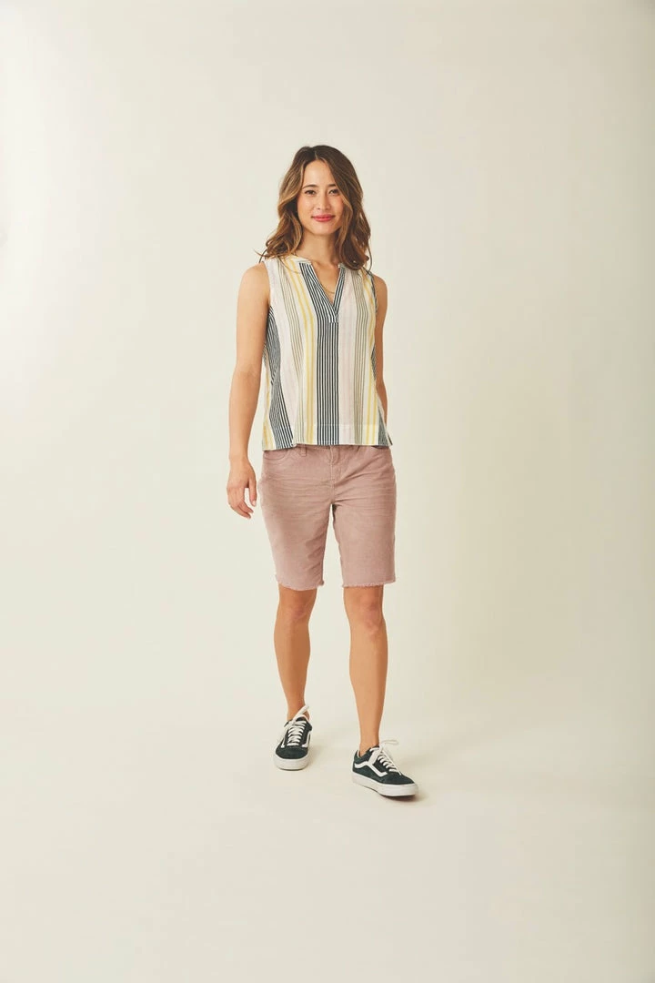 We took the fan favorite Dylan top and turned it into a tank. Refined but not too fancy, the Dylan’s raw edge hem adds a dash of rebelliousness to a sophisticated summer staple.